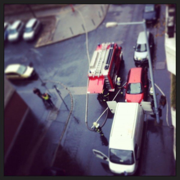 Vasárnap reggel 7 körül valami irdatlan szirénázásra keltünk. Kimentünk Kinccsel a teraszra, konkrétan alattunk kigyulladt egy autó csomagtere. Már kint voltak a tűzoltók, pajszerrel felfeszítették az autó csomagterét és spriccelték be a vizet meg hajigálták ki a füstölgő cuccost. Jó katasztrófaturistaként elő is kaptuk a telefont és kattintottunk pár képet. A tűzoltók gyorsan eloltották a tüzet, jöttek a rendőrök legalább 5 autóval és megkezdték a helyszínelést. Ez már nagyon nem volt izgalmas, úgyhogy bementem kávét főzni. Közben jött a príma ötlet, hogy el kéne küldeni a híroldalaknak, ott mindig vannak olvasói fotók, hátha egyszer mi is fent leszünk az Indexen. Át is küldtük a képeket egy kis plusz élménybeszámolóval.